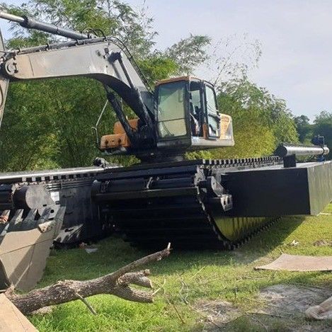 O trem de aterrissagem de pontão integrado é a pedra angular de sua funcionalidade anfíbia. Fabricados em aço de alta resistência e resistente à corrosão, os pontões fornecem a flutuabilidade essencial necessária para uma operação estável na água. Seus compartimentos selados garantem integridade à prova d'água completa, enquanto seu design otimizado contribui para a flutuação e propulsão em ambientes aquáticos. Essa combinação única de esteiras de borracha e flutuação de pontão cria uma plataforma versátil, capaz de fazer a transição perfeita da terra para a água, tornando-a um ativo indispensável para dragagem, construção de áreas úmidas, restauração ambiental e várias aplicações de engenharia marítima.