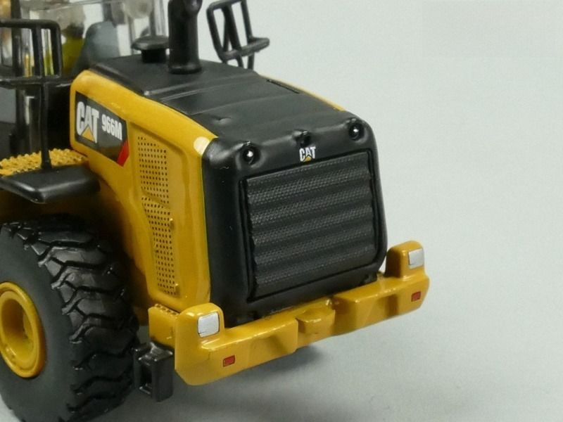| Principais Características | - Interior detalhado da cabine com operador - Lança sobe e desce - Caçamba escava e despeja - Direção articulada - Corrimãos e barras de apoio autênticos - Design autêntico da banda de rodagem dos pneus |